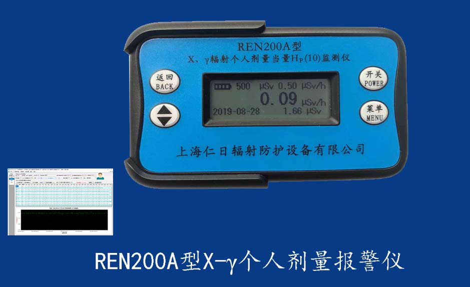 REN200A 個人輻射報警儀REN200A型X、γ輻射個人劑量當(dāng)量HP(10)監(jiān)測儀(簡稱:個人劑量報警儀)內(nèi)置高靈敏度蓋格計數(shù)管為探測器,主要用來監(jiān)測各種放射性工作場所的X、γ以及硬β射線的輻射,具有響應(yīng)快,測量范圍寬的特點。能顯示工作場所的劑量當(dāng)量率和累積劑量,更換電池時,日期及累積數(shù)據(jù)能永久保存?蛇x配RenRiPersonal個人劑量管理軟件,該軟件可存儲多個人的歷史數(shù)據(jù),能記錄日累積、月累積、年累積、輻照時長、計算平均劑量率、扣除或不扣除本底輻射,且以文字和圖譜的方式展現(xiàn)數(shù)據(jù)。廣泛應(yīng)用于核電站、加速器、鋼鐵、化工、同位素應(yīng)用、工業(yè)X、γ無損探傷、放射醫(yī)療、鈷源治療、γ輻照、放射性實驗室、核設(shè)施周圍環(huán)境監(jiān)測等領(lǐng)域中的工作人員進行個人安全防護監(jiān)測及放射性提示。&nb